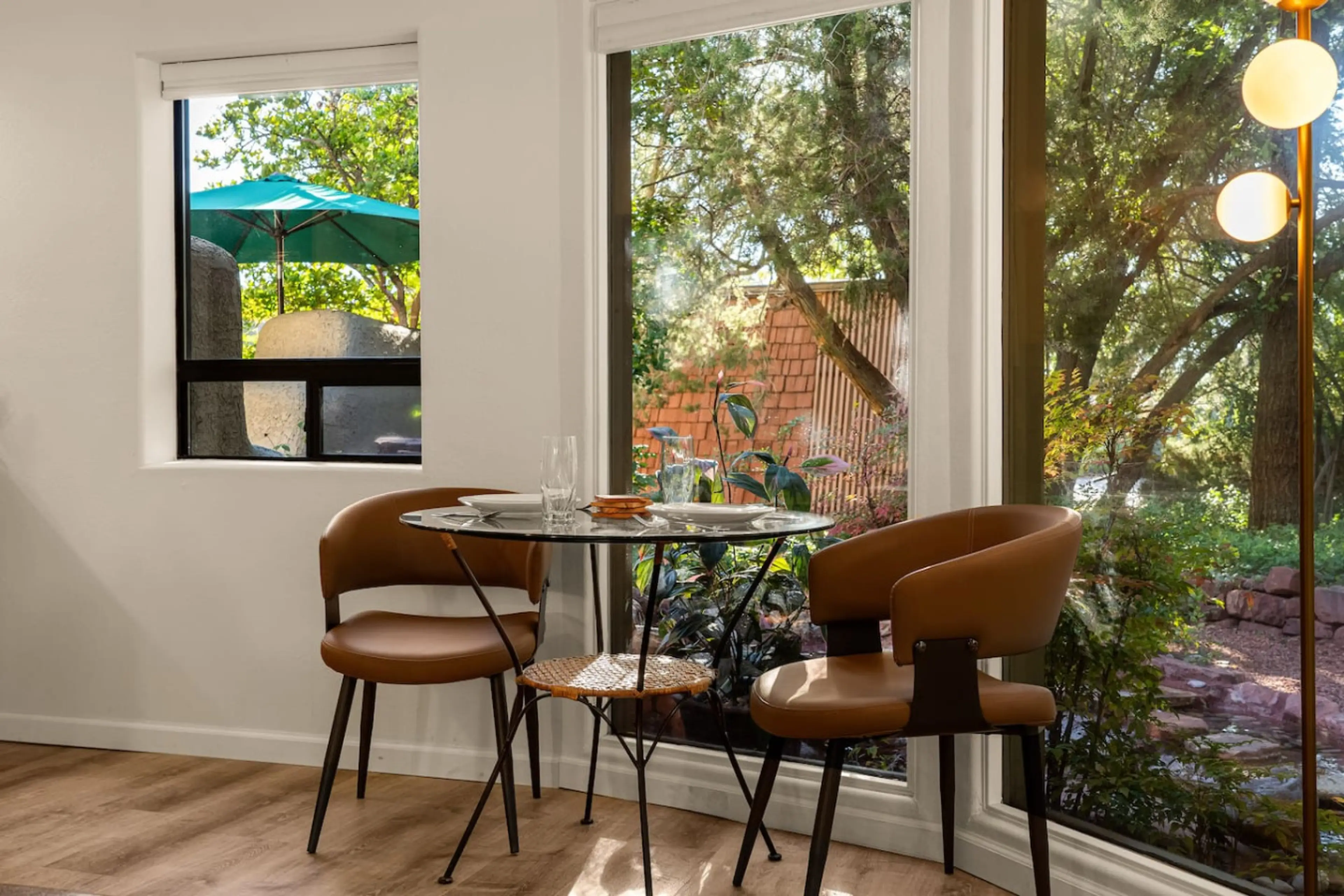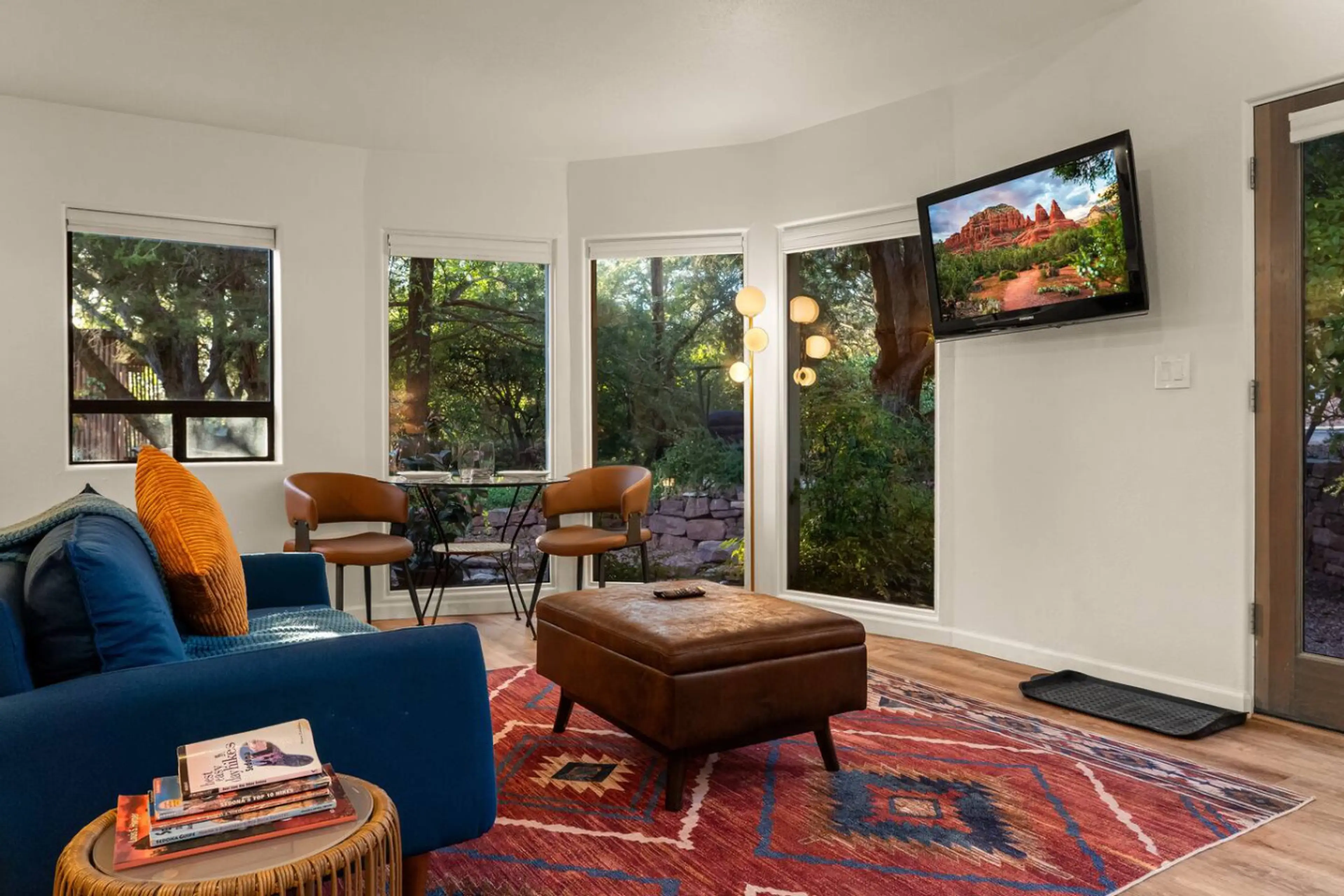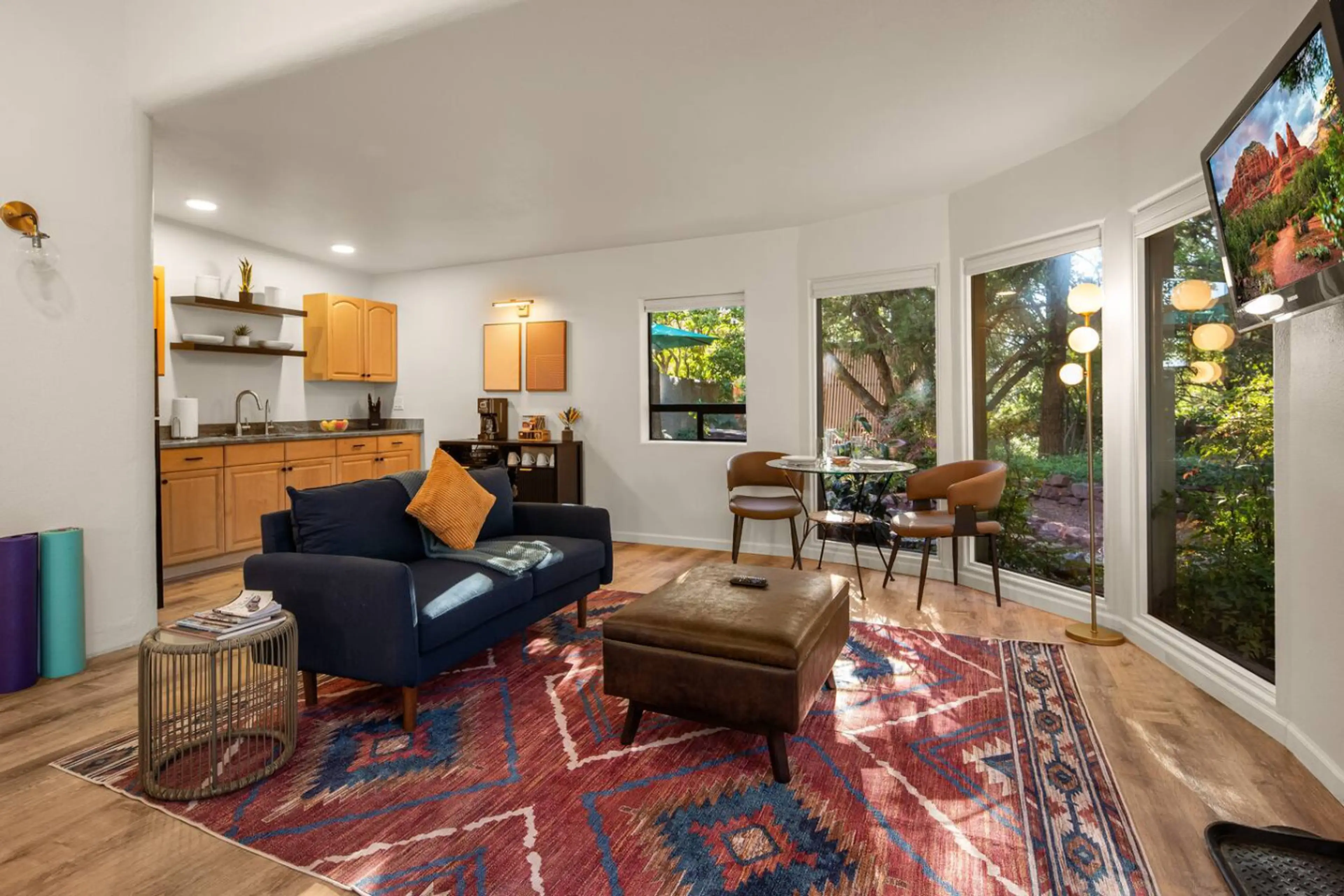 This private Sedona casita sits beneath tall trees, surrounded by garden views and soft desert light. Large windows fill the space with brightness while keeping it calm and shaded. Inside, warm wood tones, clean lines, and thoughtful details create a modern yet relaxed feel. Enjoy morning coffee in ...