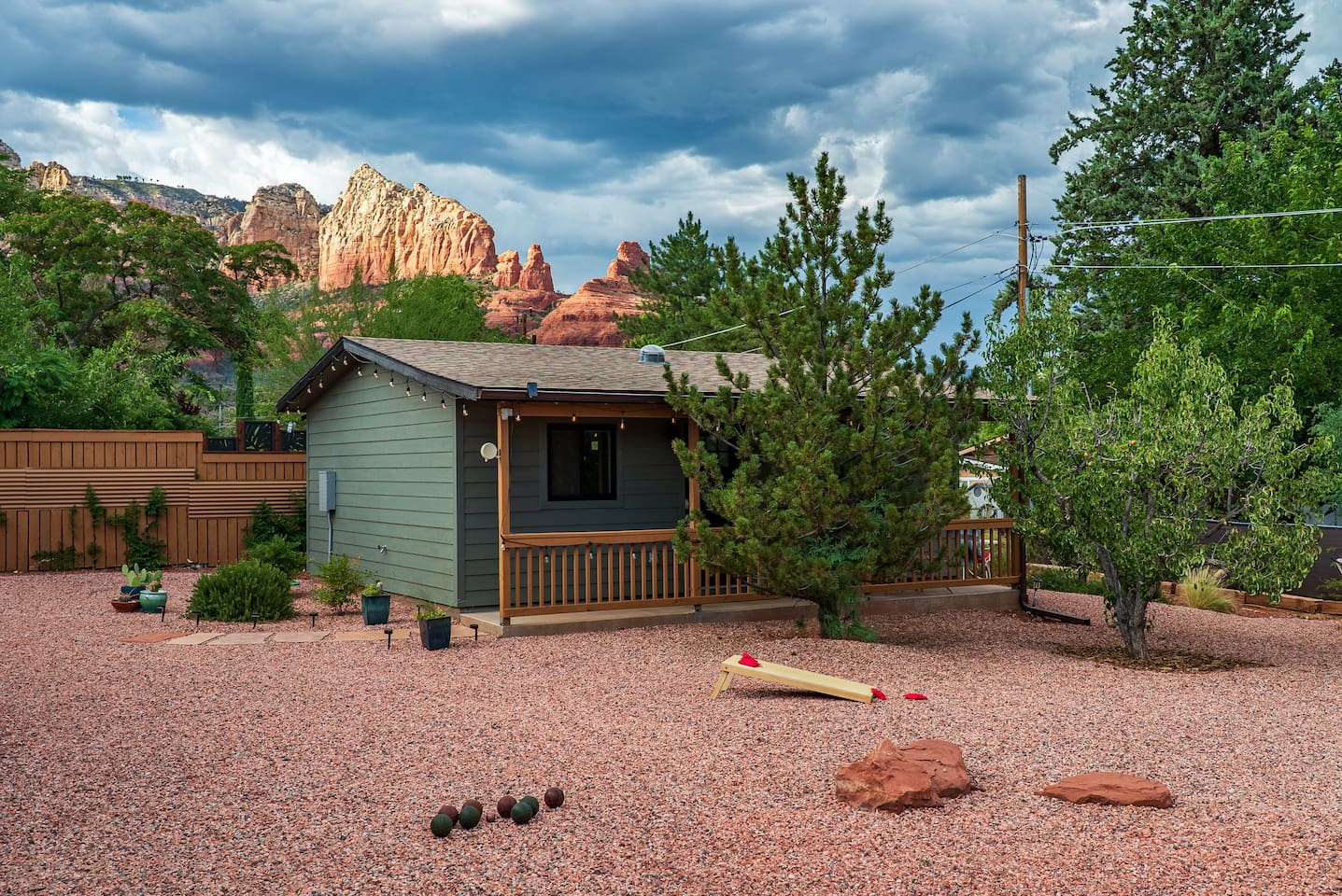 Discover this charming casita tucked snugly beneath the trees in a private garden. Designed with couples in mind, the neat yet spacious open layout features a kitchen, dining space and a living area. The main room leads into a serene en-suite bedroom. The colours and furnishings are warm and cozy....